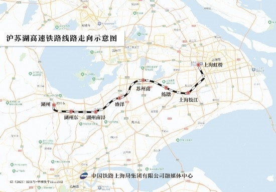 滬蘇湖高鐵是上海、蘇州、湖州基礎(chǔ)設(shè)施互聯(lián)互通的重大項(xiàng)目,也是長(zhǎng)三角高鐵聯(lián)網(wǎng)、補(bǔ)網(wǎng)、強(qiáng)鏈的重點(diǎn)項(xiàng)目。滬蘇湖高鐵由上海虹橋站引出,途經(jīng)蘇州市,終至湖州市湖州站,線路全長(zhǎng)約163公里,設(shè)計(jì)時(shí)速350公里,設(shè)上海虹橋、上海松江、練塘、蘇州南、盛澤、湖州南潯、湖州東、湖州站等8座車站。