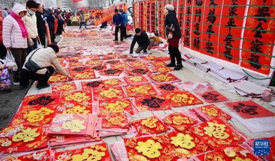 1月18日,人們在泊里大集上選購年貨。