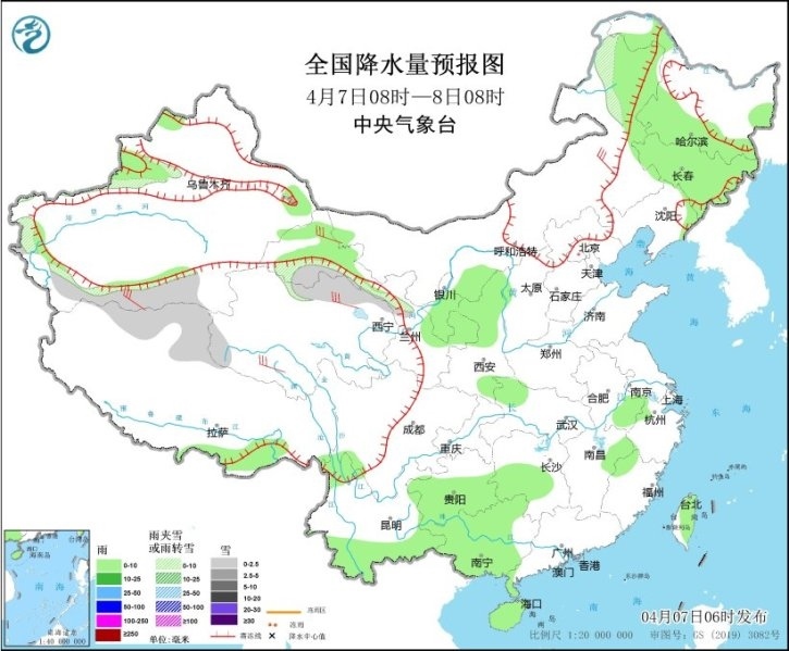 預計今明兩天,全國大部地區(qū)降水仍較弱,西南地區(qū)東部、江南、華南西部和北部、臺灣島等地部分地區(qū)有小到中雨,局地有大雨;今天(7日)新疆南疆西部、青海北部、內蒙古東北部等地部分地區(qū)有小到中雪或雨夾雪。另外,8日夜間至9日,貴州東部、江南、華南北部等地部分地區(qū)有中到大雨,局地有暴雨,并伴有強對流天氣。