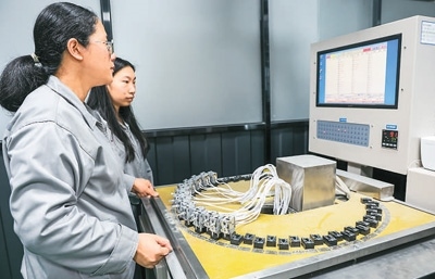 加強食品安全監(jiān)管,為冷鏈設備制造企業(yè)帶來了發(fā)展機遇。圖為西科冷鏈江門制造基地的產品實驗室工程師在進行電子元件耐用性測試。