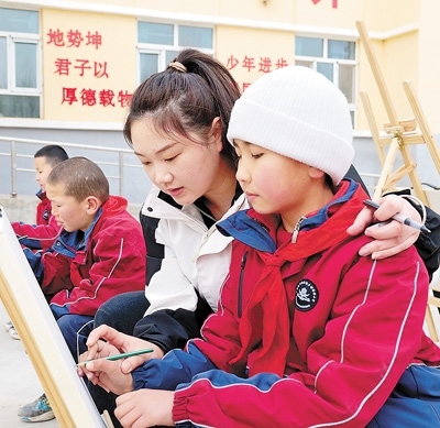 2023年,高潮從山西大同大學(xué)美術(shù)學(xué)院畢業(yè)前,看到了西部計(jì)劃的招募信息?!耙ツ敲催h(yuǎn)的地方當(dāng)老師嗎?”高潮有點(diǎn)猶豫。她小時(shí)候在鄉(xiāng)村小學(xué)讀書,因?yàn)槔蠋熒?,很多課程都開展不起來,“想到自己小時(shí)候的經(jīng)歷,我下定了決心。”