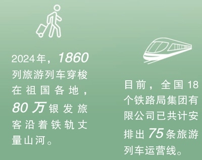 今年2月,商務部、文化和旅游部、中國國家鐵路集團有限公司等9單位聯(lián)合發(fā)布《關于增開銀發(fā)旅游列車促進服務消費發(fā)展的行動計劃》,指出要擴容旅游列車線路和產品,豐富銀發(fā)旅游列車產品供給,建立品質型、舒適型、普惠型產品體系。目前,全國18個鐵路局集團有限公司已共計安排出75條旅游列車運營線。一趟趟銀發(fā)列車如春日繁花次第綻放,為老年人鋪就通往詩與遠方的旅途,更以流動的風景線激活沿線文旅消費,為推動經濟高質量發(fā)展注入“銀發(fā)”新動能。