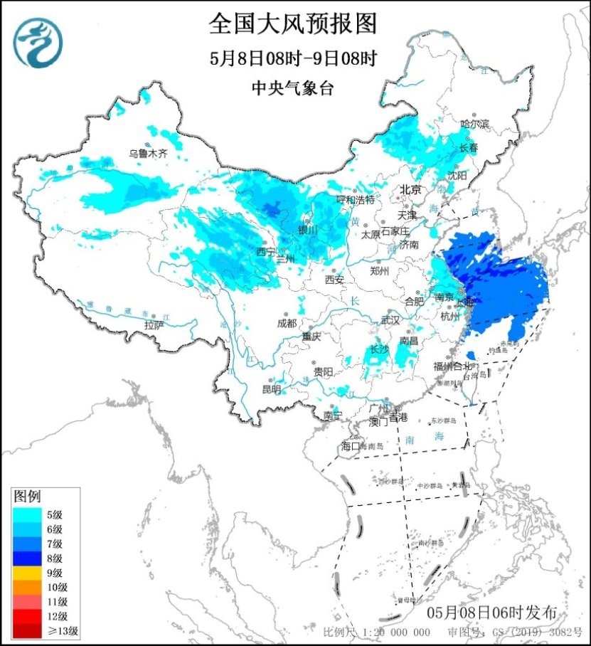 此外,受冷空氣影響,8日至9日,西北地區(qū)東部、內(nèi)蒙古、華北將先后有4~8℃降溫,上述部分地區(qū)有4~6級風(fēng),陣風(fēng)7~10級,內(nèi)蒙古西部、新疆南疆等地部分地區(qū)伴有沙塵天氣。目前,大風(fēng)藍(lán)色預(yù)警生效中。