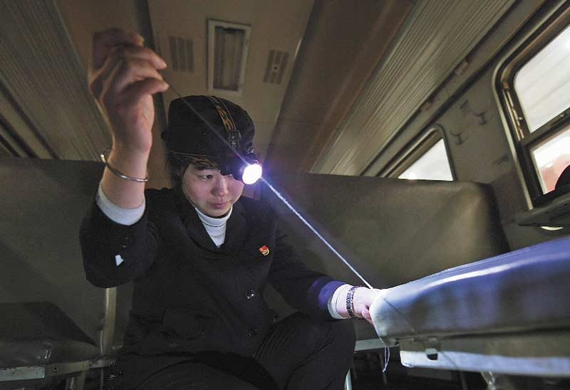 “時(shí)間緊,任務(wù)重。我們的職工加班加點(diǎn)排查整修支南列車的制動(dòng)裝置、電器線路等關(guān)鍵部位,就連列車茶爐、洗面間、空調(diào)、衛(wèi)生間等服務(wù)設(shè)備也不放過(guò),為的就是能給回家過(guò)年的旅客打造一個(gè)更安全、更舒適的乘車環(huán)境。”說(shuō)起自己的隊(duì)伍,包頭車輛段黨委副書(shū)記白世平很驕傲。(內(nèi)蒙古日?qǐng)?bào)社融媒體記者孟和朝魯攝影報(bào)道)