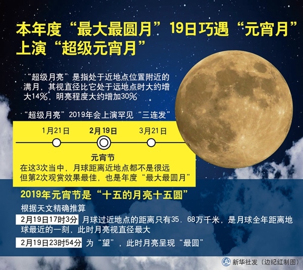 元宵將至,月滿冰輪。天文專家表示,2019年的元宵月不僅恰逢“年度最大最圓月”,還是“十五月亮十五圓”,最圓時(shí)刻出現(xiàn)在19日23時(shí)54分。屆時(shí),我國(guó)凡是天氣晴朗的地方,都將會(huì)出現(xiàn)“皓月當(dāng)空照”的天文美景。