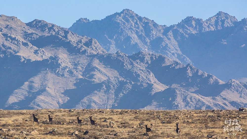 △巖羊是國家二級保護動物,因攀登本領(lǐng)高超被譽為“峭壁精靈”?!稌r政新聞眼》恰巧捕捉到它們跳躍的身影。(總臺央視記者陶鵬飛拍攝)