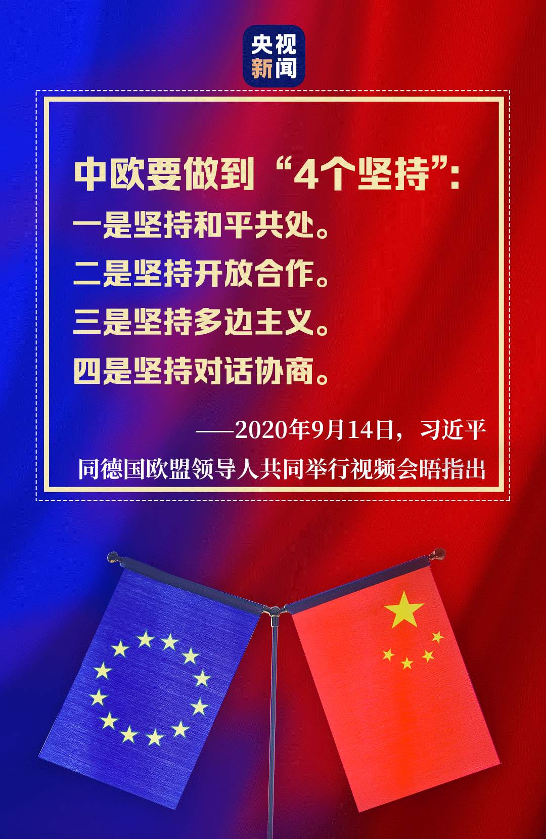 “后疫情時代”中歐關系如何發(fā)展,習近平主席的“4個堅持”向世界表明了中國立場、中國態(tài)度。