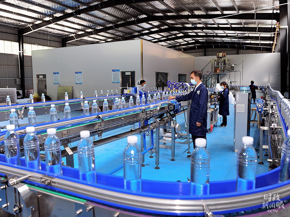 △湖南邵陽(yáng)市桐山鄉(xiāng)椒林村充分利用當(dāng)?shù)厣饺Y源,加工生產(chǎn)瓶裝水。