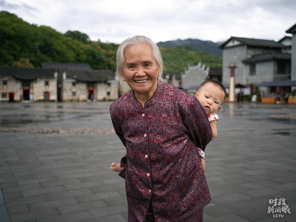 △16日下午,總書(shū)記離開(kāi)沙洲村前,82歲的曹戰(zhàn)蘭老人一直緊緊握住總書(shū)記的手。(總臺(tái)央視記者彭漢明拍攝)