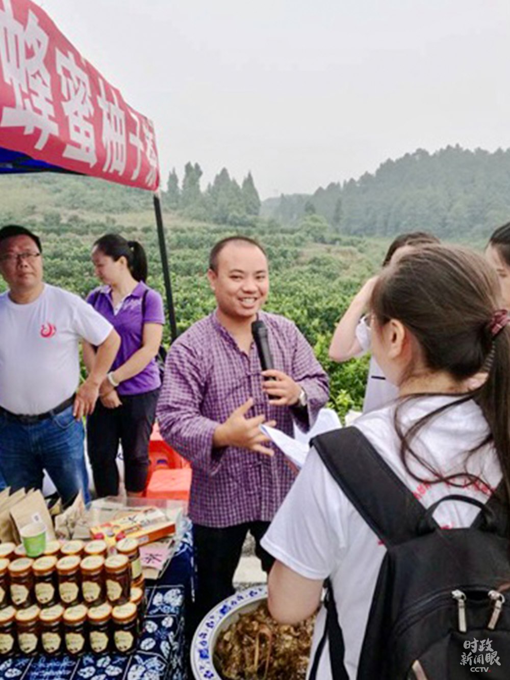 △周祖輝今年4月被評(píng)為“2020年全國(guó)向上向善好青年”。這是他向游客推介家鄉(xiāng)特產(chǎn)。