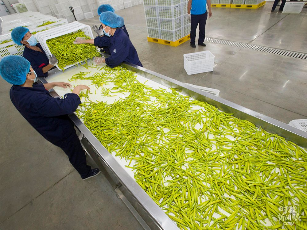 △7月中旬,山西大同黃花進(jìn)入采摘季。經(jīng)過清洗、篩選,最終由工人裝車推入烘干房。