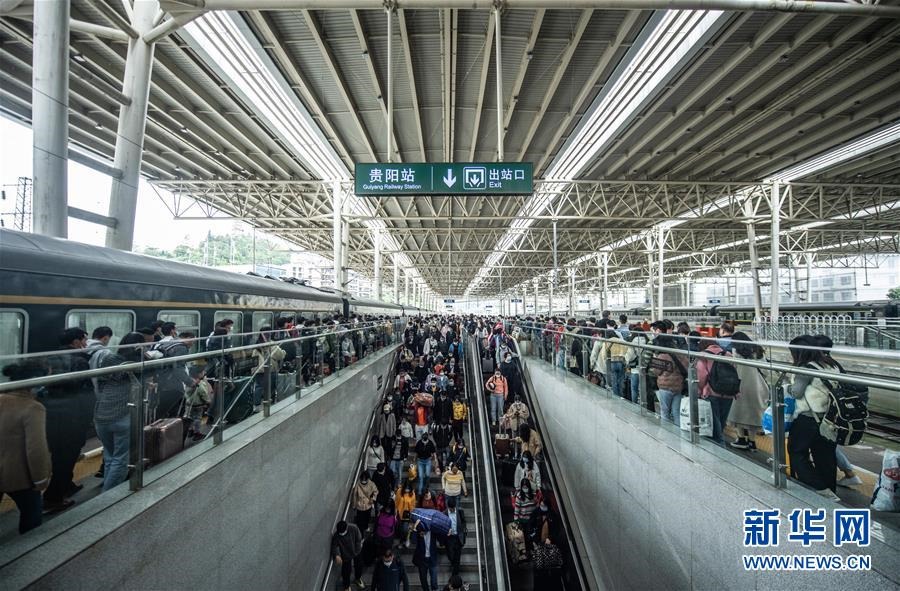 10月7日,長(zhǎng)假臨近尾聲,貴陽(yáng)火車(chē)站迎來(lái)旅客返程高峰。這是旅客在貴陽(yáng)火車(chē)站準(zhǔn)備出站。新華社記者陶亮攝