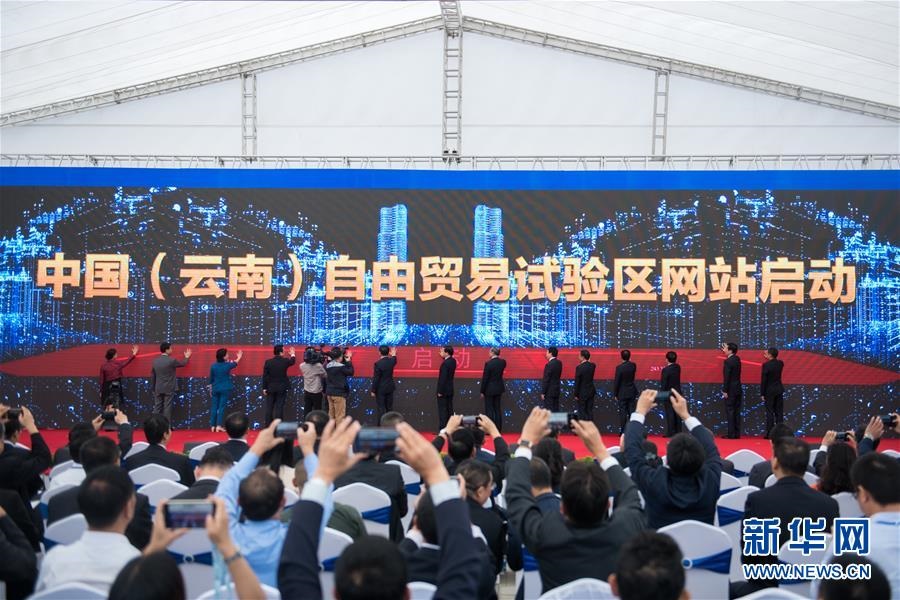 2019年8月30日,在中國(guó)(云南)自由貿(mào)易試驗(yàn)區(qū)掛牌儀式上,云南自貿(mào)區(qū)網(wǎng)站啟動(dòng)。新華社記者胡超攝