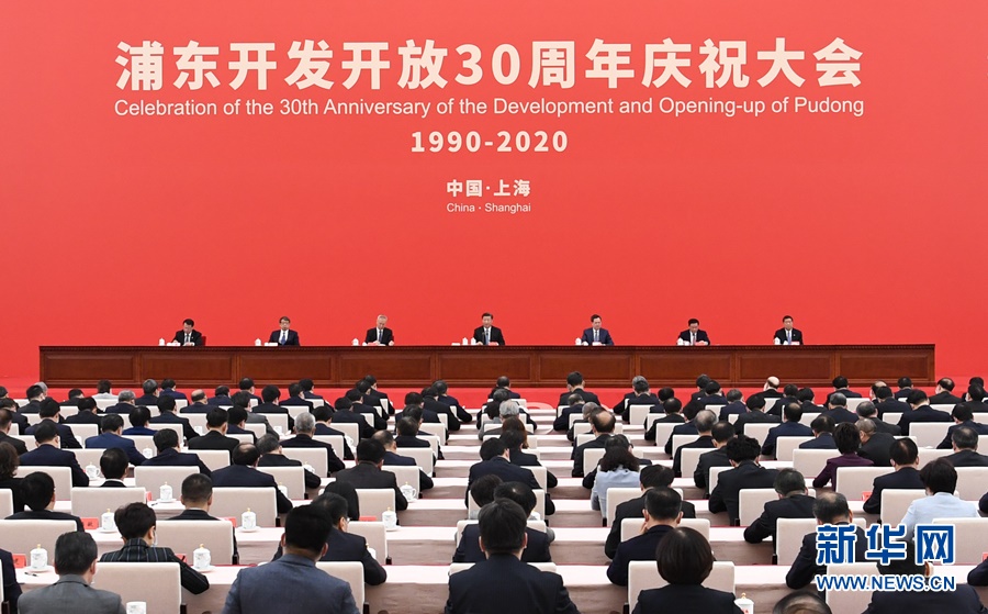 11月12日,浦東開發(fā)開放30周年慶祝大會(huì)在上海市舉行。中共中央總書記、國(guó)家主席、中央軍委主席習(xí)近平在會(huì)上發(fā)表重要講話。新華社記者翟健嵐攝