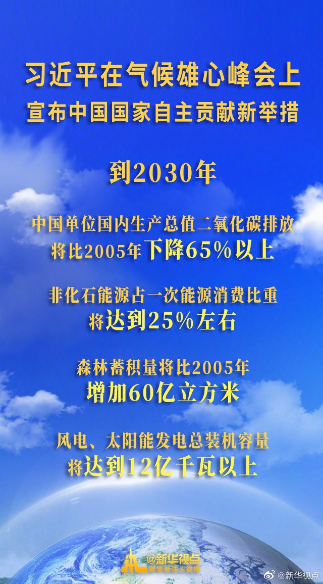 12月12日,國家主席習(xí)近平在氣候雄心峰會上宣布中國國家自主貢獻(xiàn)新舉措?! ?/p>