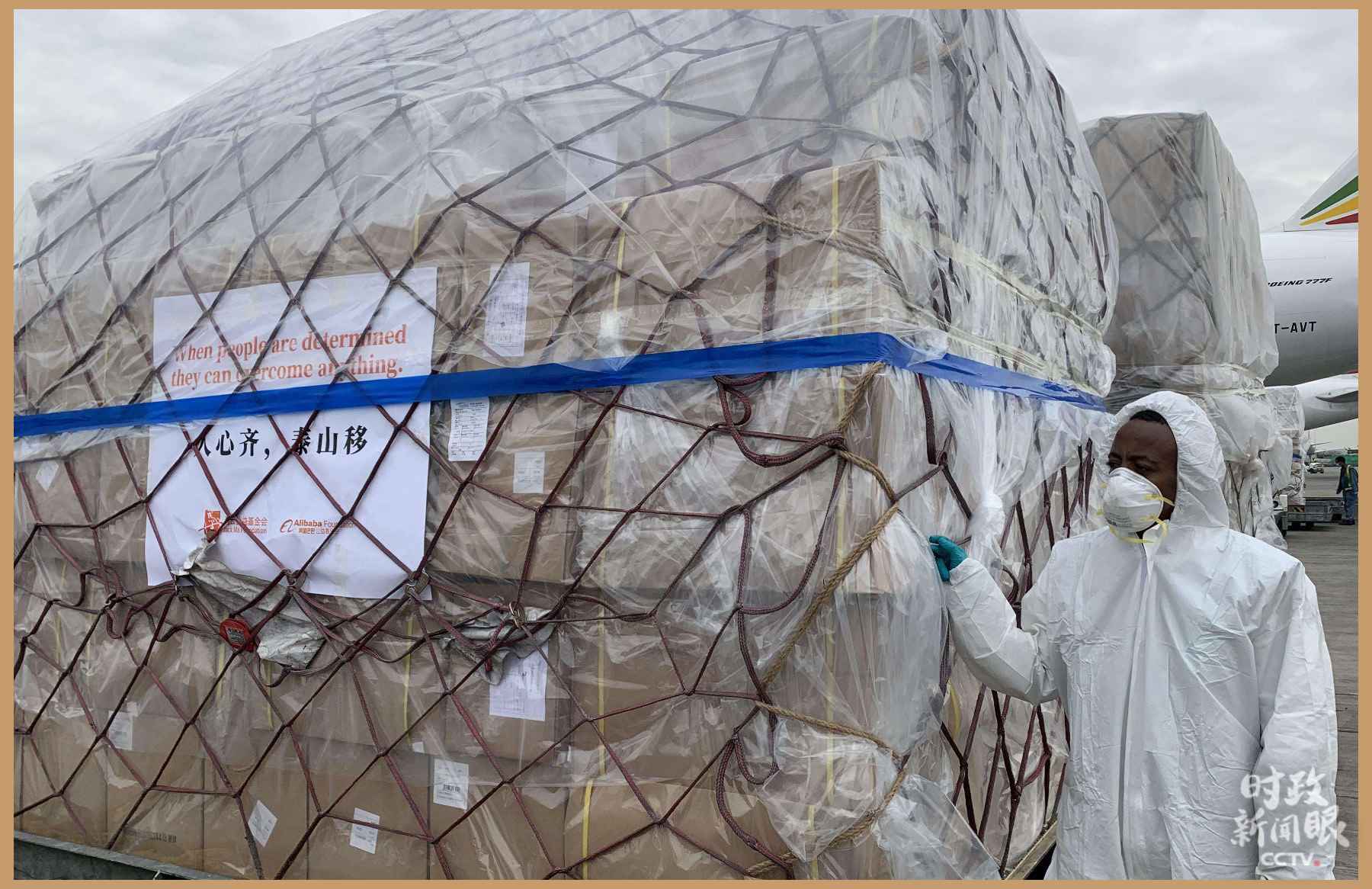 △2020年3月22日,用于支援非洲54國抗擊疫情的中國援助物資運(yùn)抵埃塞俄比亞首都亞的斯亞貝巴國際機(jī)場。