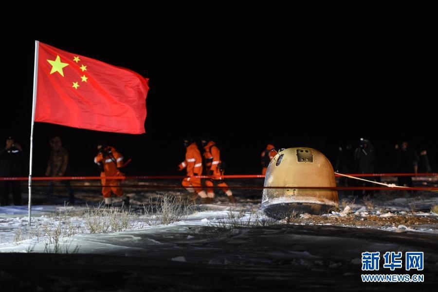 2020年12月17日凌晨,嫦娥五號(hào)返回器攜帶月球樣品,采用半彈道跳躍方式再入返回,在內(nèi)蒙古四子王旗預(yù)定區(qū)域安全著陸。新華社記者 連振 攝