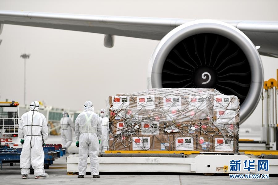 2020年4月15日,工作人員在裝運(yùn)援助沙特阿拉伯的醫(yī)療物資。新華社記者 馮開(kāi)華 攝