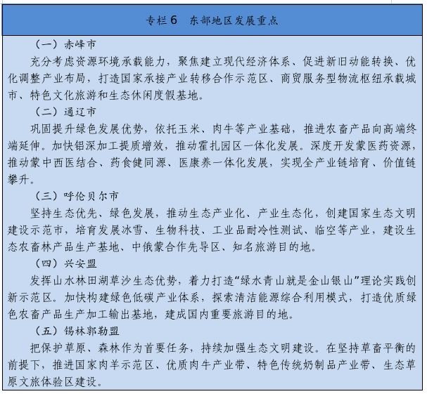 經(jīng)濟發(fā)展基礎(chǔ)更加穩(wěn)固。地區(qū)生產(chǎn)總值年均增長4.3%,人均地區(qū)生產(chǎn)總值突破1萬美元,常住人口城鎮(zhèn)化率達到64.1%。能源和戰(zhàn)略資源基地得到提升,煤炭產(chǎn)能、外運量、發(fā)電量和外送電量均居全國首位,可再生能源裝機占比達到36.1%,稀土原材料就地轉(zhuǎn)化率達到75%,稀土功能材料及終端應(yīng)用產(chǎn)品占比達到53.6%。農(nóng)畜產(chǎn)品生產(chǎn)基地更加鞏固,糧食和畜牧生產(chǎn)連豐連穩(wěn),農(nóng)畜產(chǎn)品加工轉(zhuǎn)化率達到65%,形成2個千億級、9個百億級農(nóng)牧業(yè)主導產(chǎn)業(yè)。數(shù)字經(jīng)濟、會展經(jīng)濟、商貿(mào)物流、現(xiàn)代金融等加快發(fā)展。