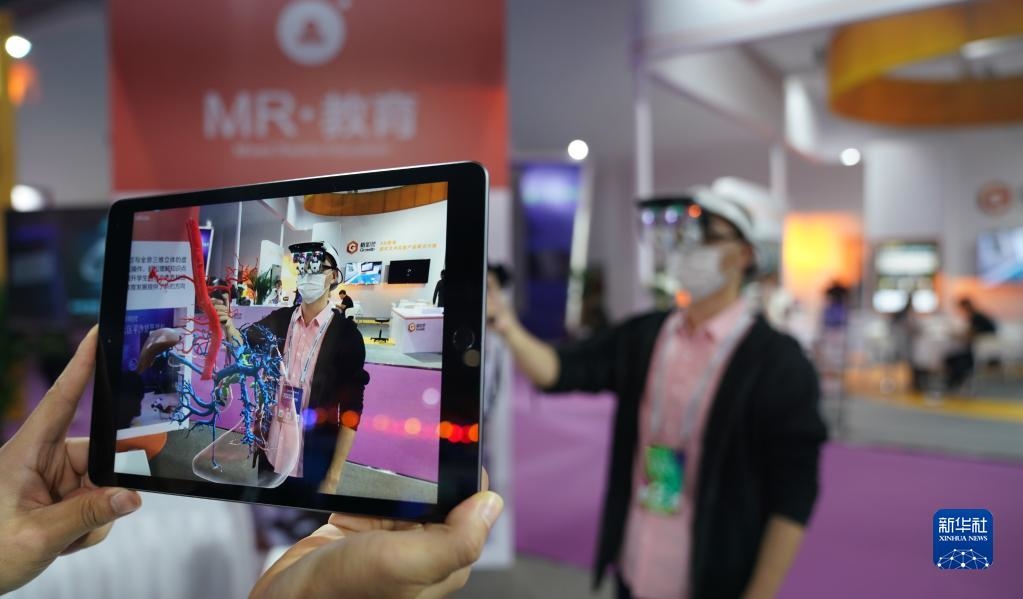2020年10月19日,2020世界VR產(chǎn)業(yè)大會(huì)云峰會(huì)在江西省南昌市開(kāi)幕,這是觀眾在大會(huì)VR/AR產(chǎn)品和應(yīng)用展覽會(huì)上體驗(yàn)“MR交互系統(tǒng)”在醫(yī)務(wù)教學(xué)上的應(yīng)用。新華社記者胡晨歡攝