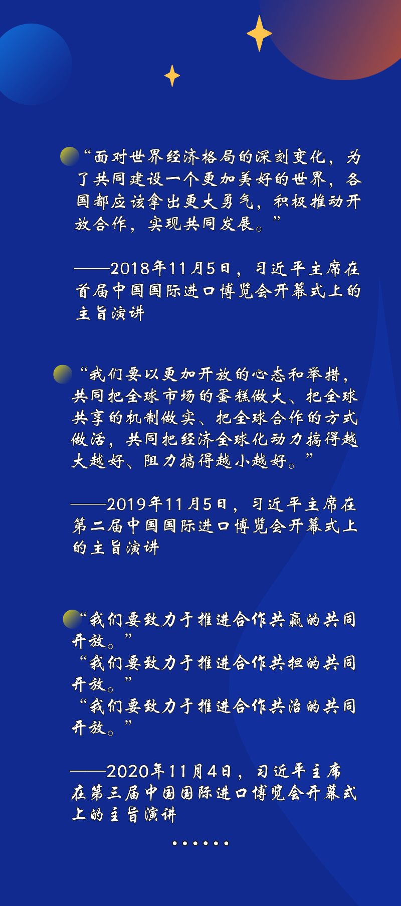 在前三屆進(jìn)博會開幕式上的主旨演講中,“合作”“共贏”是不變的高頻詞——