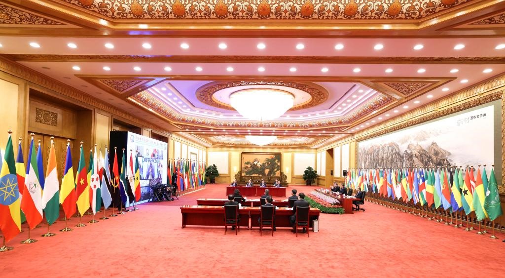 “志合者,不以山海為遠(yuǎn)”。29日晚,北京人民大會堂東大廳內(nèi),中國和53個(gè)非洲國家國旗以及非洲聯(lián)盟旗幟并排矗立、恢弘大氣,雖是“云端”相聚,但現(xiàn)場洋溢著濃濃情誼,昭示著中非歷久彌堅(jiān)的友好關(guān)系。
