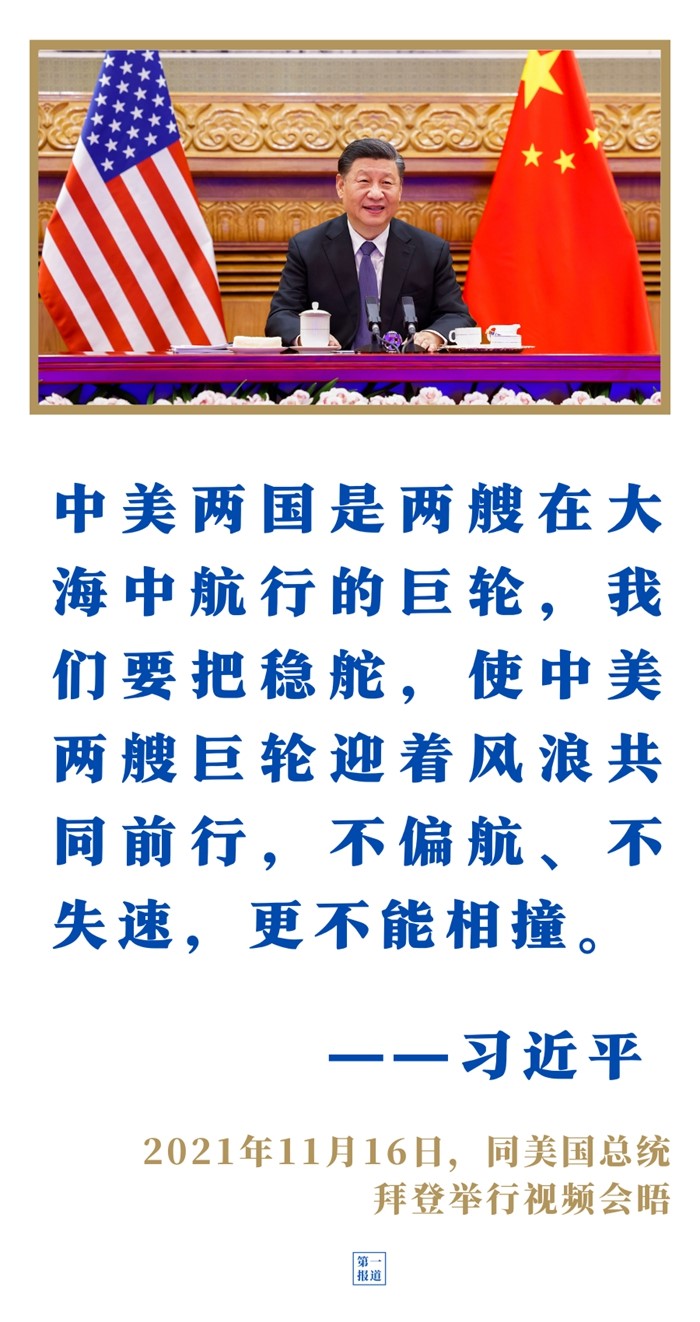 習(xí)近平主席同美國總統(tǒng)拜登舉行視頻會晤時,提出中美相互尊重、和平共處、合作共贏三點原則和應(yīng)當(dāng)著力推動的四方面優(yōu)先事項,為中美關(guān)系的未來走向明確了基本框架。