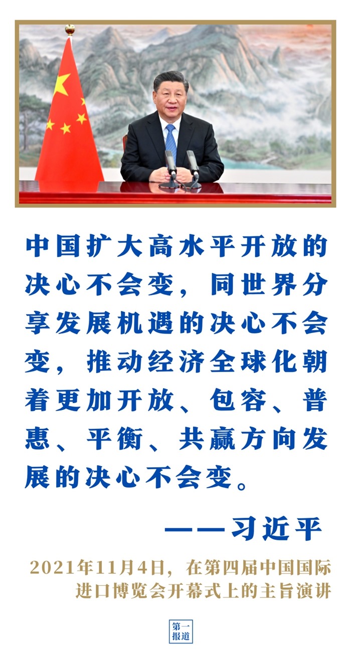 第四屆進博會上,習(xí)近平主席表示,中國愿同各國共建開放型世界經(jīng)濟,讓開放的春風(fēng)溫暖世界;第三次“一帶一路”建設(shè)座談會上,習(xí)近平主席強調(diào)以高標(biāo)準(zhǔn)、可持續(xù)、惠民生為目標(biāo),繼續(xù)推動共建“一帶一路”高質(zhì)量發(fā)展。