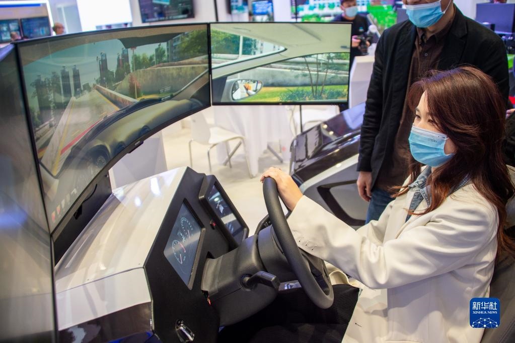 11月19日至21日,2021中國(guó)5G+工業(yè)互聯(lián)網(wǎng)大會(huì)在位于武漢的中國(guó)光谷科技會(huì)展中心舉行。這是11月19日,參觀者在“5G+工業(yè)互聯(lián)網(wǎng)成果展”上體驗(yàn)駕駛智能模擬器。新華社發(fā)(伍志尊攝)