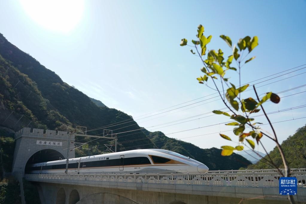 圖為2020年10月6日,一列復(fù)興號(hào)高鐵列車(chē)穿過(guò)京張高鐵居庸關(guān)隧道。新華社記者鞠煥宗攝