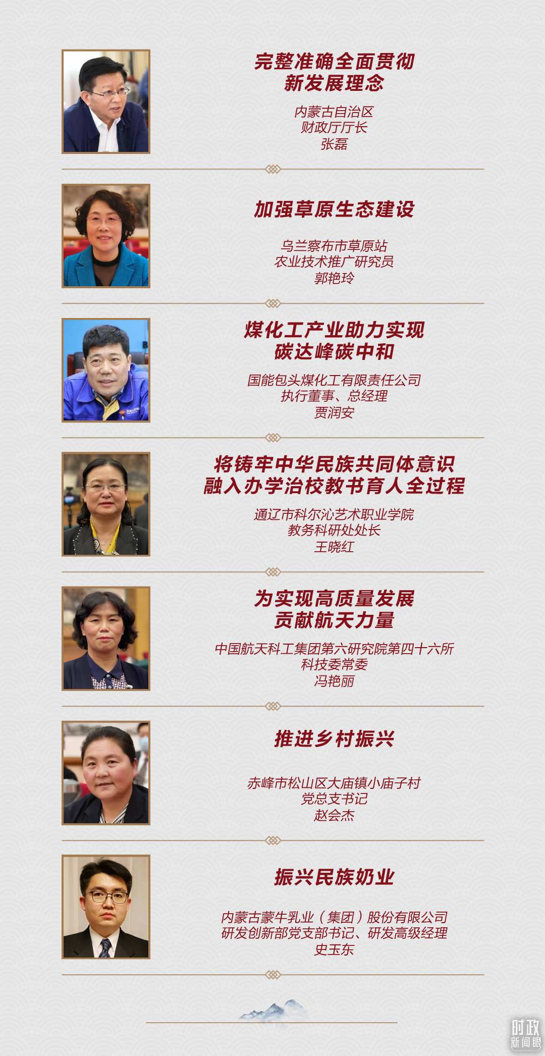 來自科爾沁藝術(shù)職業(yè)學院的王曉紅代表建議,把鑄牢中華民族共同體意識融入辦學治校、教書育人全過程。從前年的梅花代表、去年的娜仁圖雅代表,再到今年的王曉紅代表,三位教師都關(guān)注民族團結(jié)與教育這一議題??倳浽趦?nèi)蒙古代表團多次談到要深化民族團結(jié)進步教育。