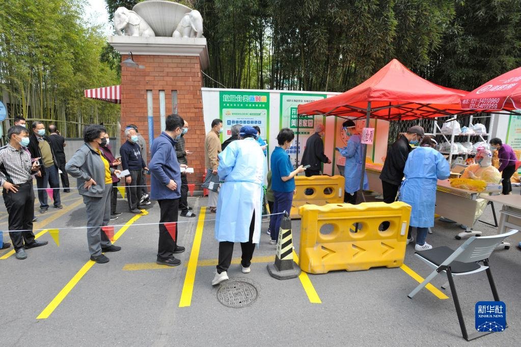3月13日,上海市明園小安橋小區(qū)的居民排隊(duì)等待接受核酸檢測(cè)。新華社記者 高峰 攝