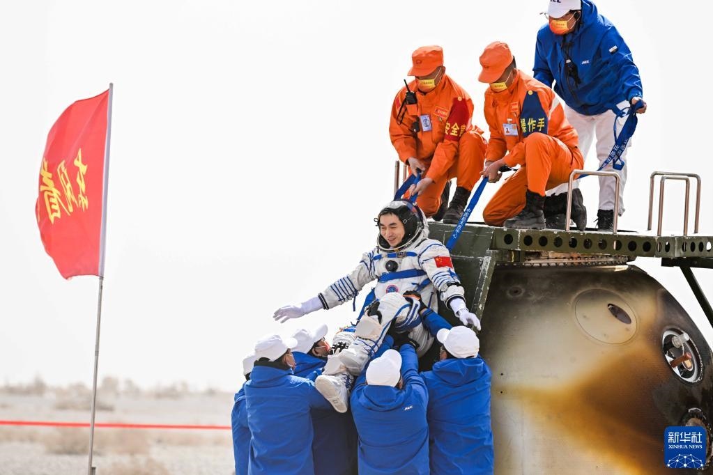 4月16日,神舟十三號載人飛船返回艙在東風著陸場成功著陸。這是航天員王亞平安全順利出艙。新華社記者 連振 攝