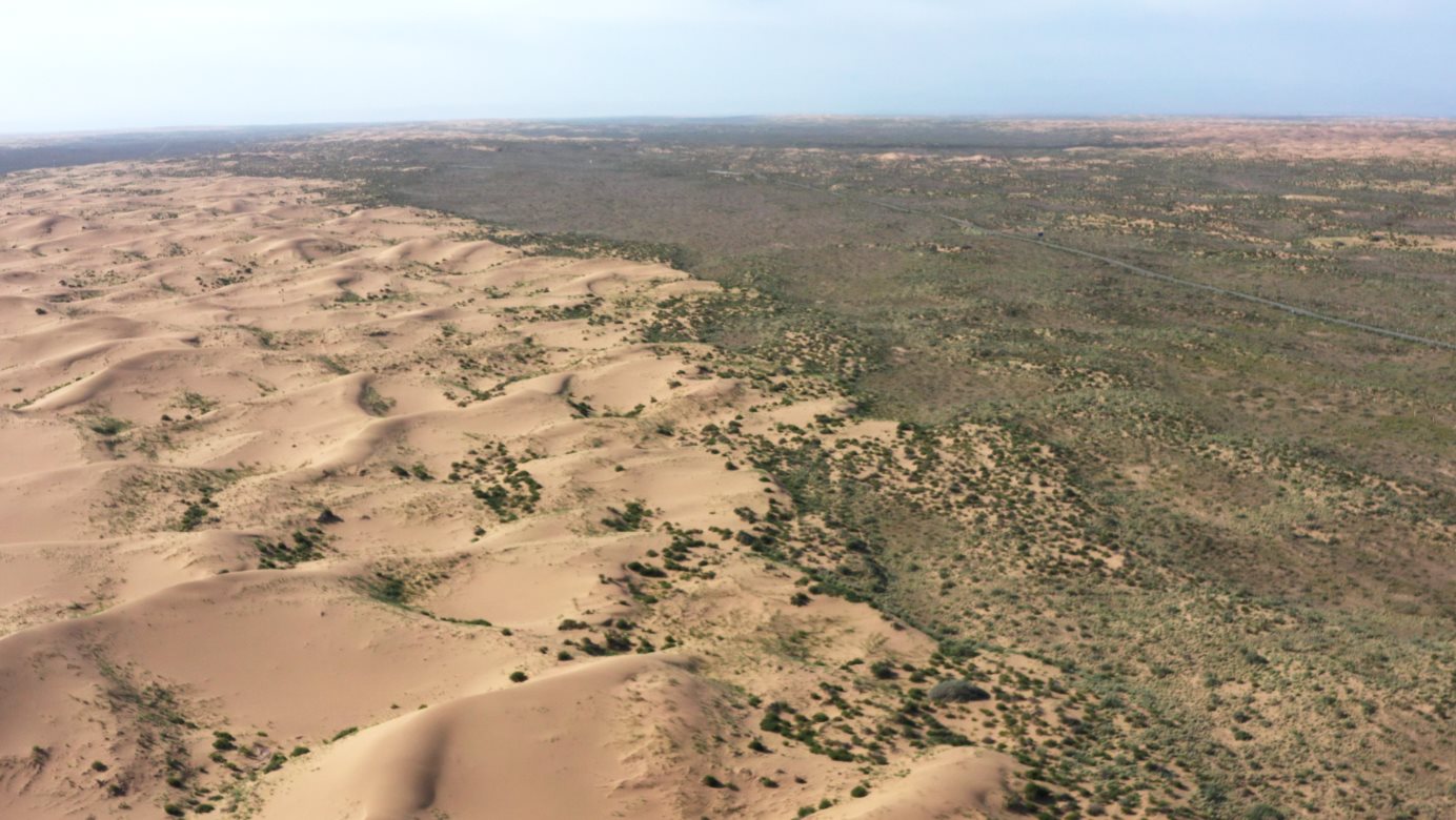 記者采訪當(dāng)天,八步沙林場(chǎng)的第三代治沙人郭璽受邀去參加一場(chǎng)治沙經(jīng)驗(yàn)交流會(huì)。
