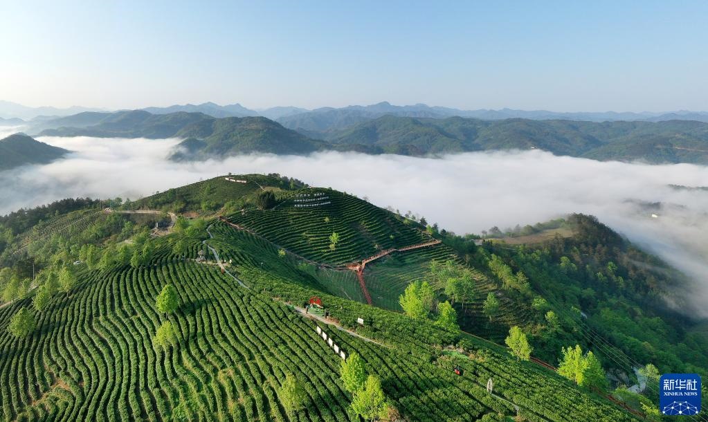 陜西省安康市平利縣老縣鎮(zhèn)蔣家坪茶園(2022年4月5日攝,無人機照片)。新華社記者 陶明 攝