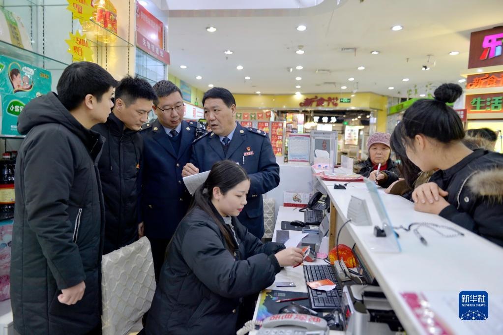 河北寧晉縣紀(jì)檢干部與稅務(wù)稽查人員在當(dāng)?shù)匾患页袡z查是否有單位公款購(gòu)買購(gòu)物卡情況(2018年12月29日攝)。新華社記者 牟宇 攝