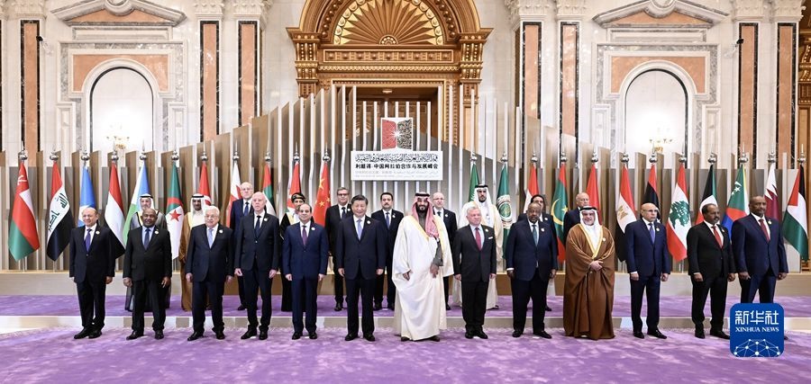 當?shù)貢r間12月9日下午,首屆中國-阿拉伯國家峰會在沙特首都利雅得阿卜杜勒阿齊茲國王國際會議中心舉行。國家主席習近平和沙特王儲兼首相穆罕默德、埃及總統(tǒng)塞西、約旦國王阿卜杜拉二世、巴林國王哈馬德、科威特王儲米沙勒、突尼斯總統(tǒng)賽義德、吉布提總統(tǒng)蓋萊、巴勒斯坦總統(tǒng)阿巴斯、卡塔爾埃米爾塔米姆、科摩羅總統(tǒng)阿扎利、毛里塔尼亞總統(tǒng)加茲瓦尼、伊拉克總理蘇達尼、摩洛哥首相阿赫努什、阿爾及利亞總理阿卜杜拉赫曼、黎巴嫩總理米卡提等21個阿盟國家領導人以及阿拉伯國家聯(lián)盟秘書長蓋特等國際組織負責人出席峰會。習近平在會上發(fā)表題為《弘揚中阿友好精神 攜手構(gòu)建面向新時代的中阿命運共同體》的主旨講話。新華社記者 謝環(huán)馳 攝