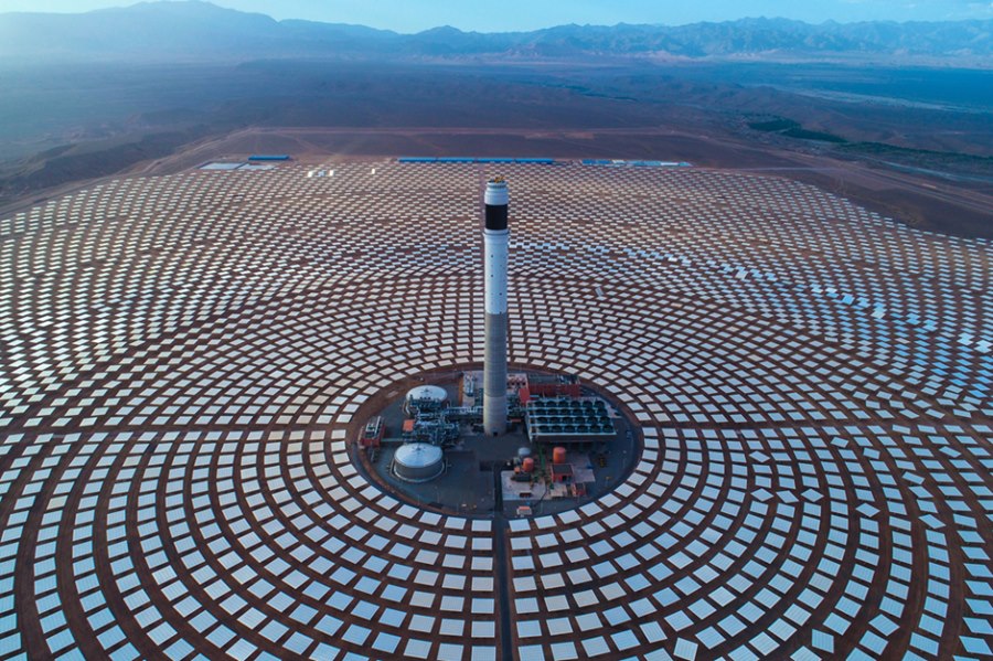 這是2018年6月7日在摩洛哥瓦爾扎扎特拍攝的努奧光熱電站項目三期工程(航拍照片)。從2015年起,中國電建集團(tuán)下屬的山東電建三公司在瓦爾扎扎特承建努奧光熱電站項目二期和三期工程。努奧光熱電站為超過百萬的摩洛哥家庭提供清潔能源。