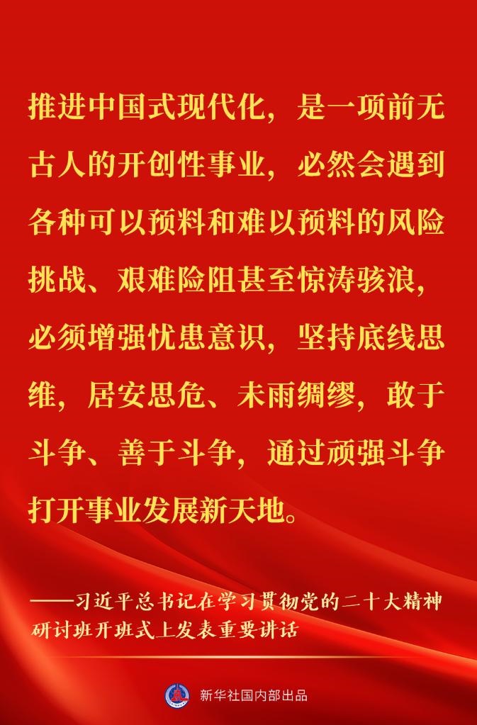 新進(jìn)中央委員會(huì)的委員、候補(bǔ)委員和省部級(jí)主要領(lǐng)導(dǎo)干部學(xué)習(xí)貫徹習(xí)近平新時(shí)代中國(guó)特色社會(huì)主義思想和黨的二十大精神研討班7日上午在中央黨校(國(guó)家行政學(xué)院)開班。中共中央總書記、國(guó)家主席、中央軍委主席習(xí)近平在開班式上發(fā)表重要講話。一起來看金句↓