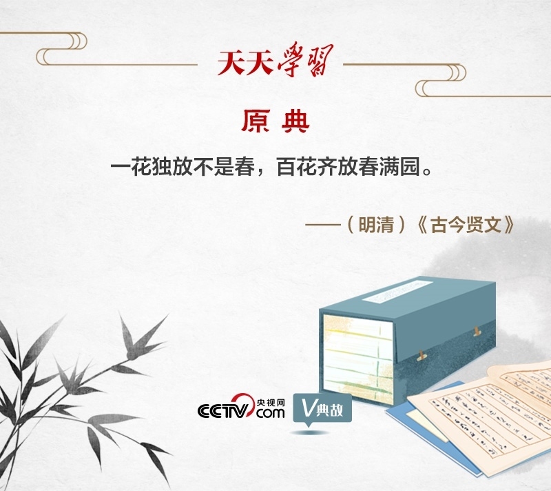 “一花獨(dú)放不是春,百花齊放春滿園”,意思是,一枝單獨(dú)開放的花朵不能代表春天的到來,只有百花競(jìng)艷才是人間春色。這句民諺之所以廣為流傳,是因?yàn)轱柡羁陶芾恚阂弧㈥U述了整體和部分的辯證關(guān)系,“一花”是部分,“百花”是整體,部分的功能是較小的,要以整體發(fā)展帶動(dòng)部分發(fā)展;二、體現(xiàn)了聯(lián)系的觀點(diǎn),聯(lián)系具有普遍性,“一花”和“百花”是相互聯(lián)系的,因此要尊重文化的多樣性;三、說明了事物是客觀的和發(fā)展變化的,“百花齊放”是必然的,因此要順應(yīng)歷史潮流。