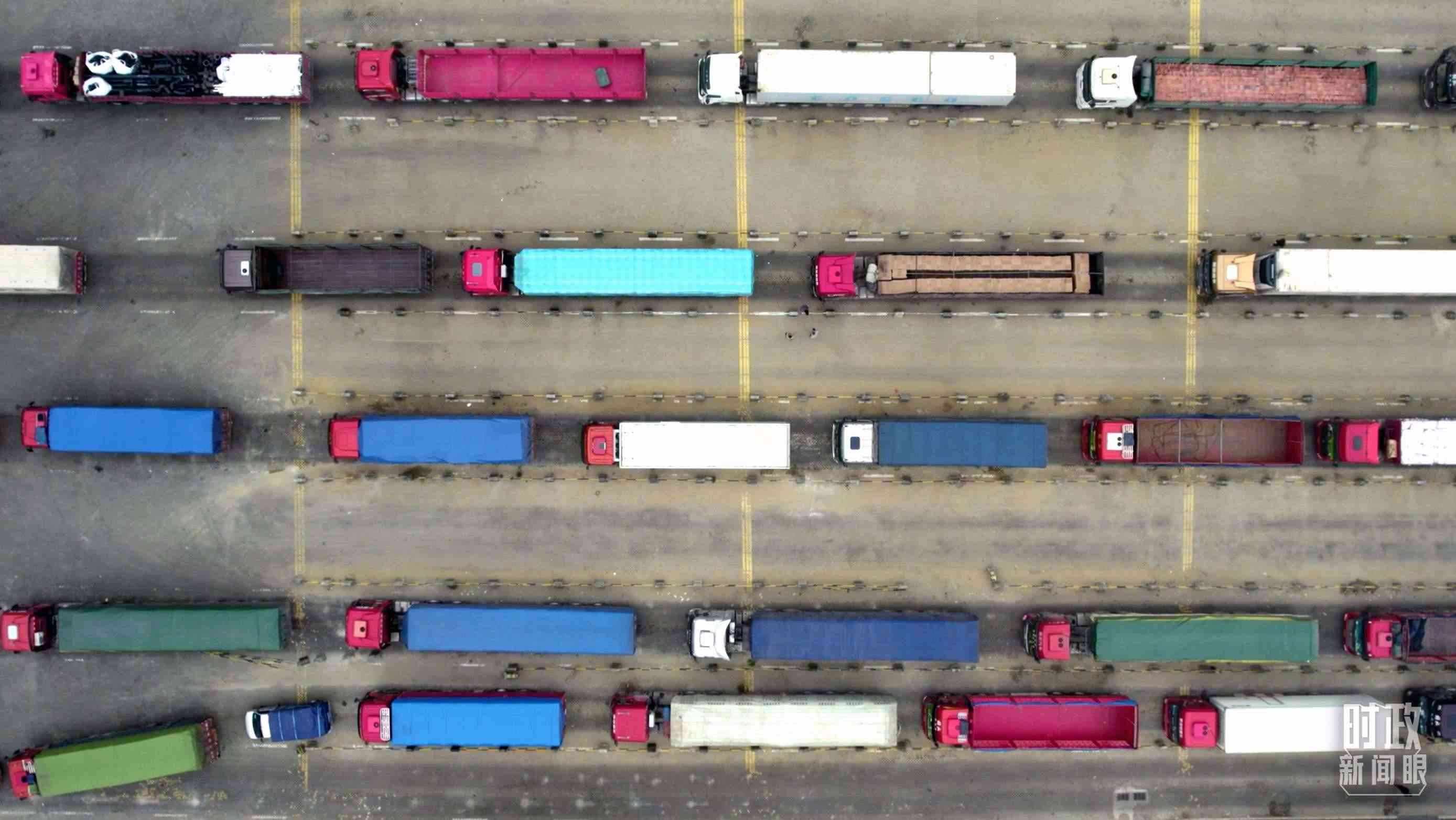 △徐聞港內(nèi)運送貨物的車隊。(總臺央視記者范凱拍攝)