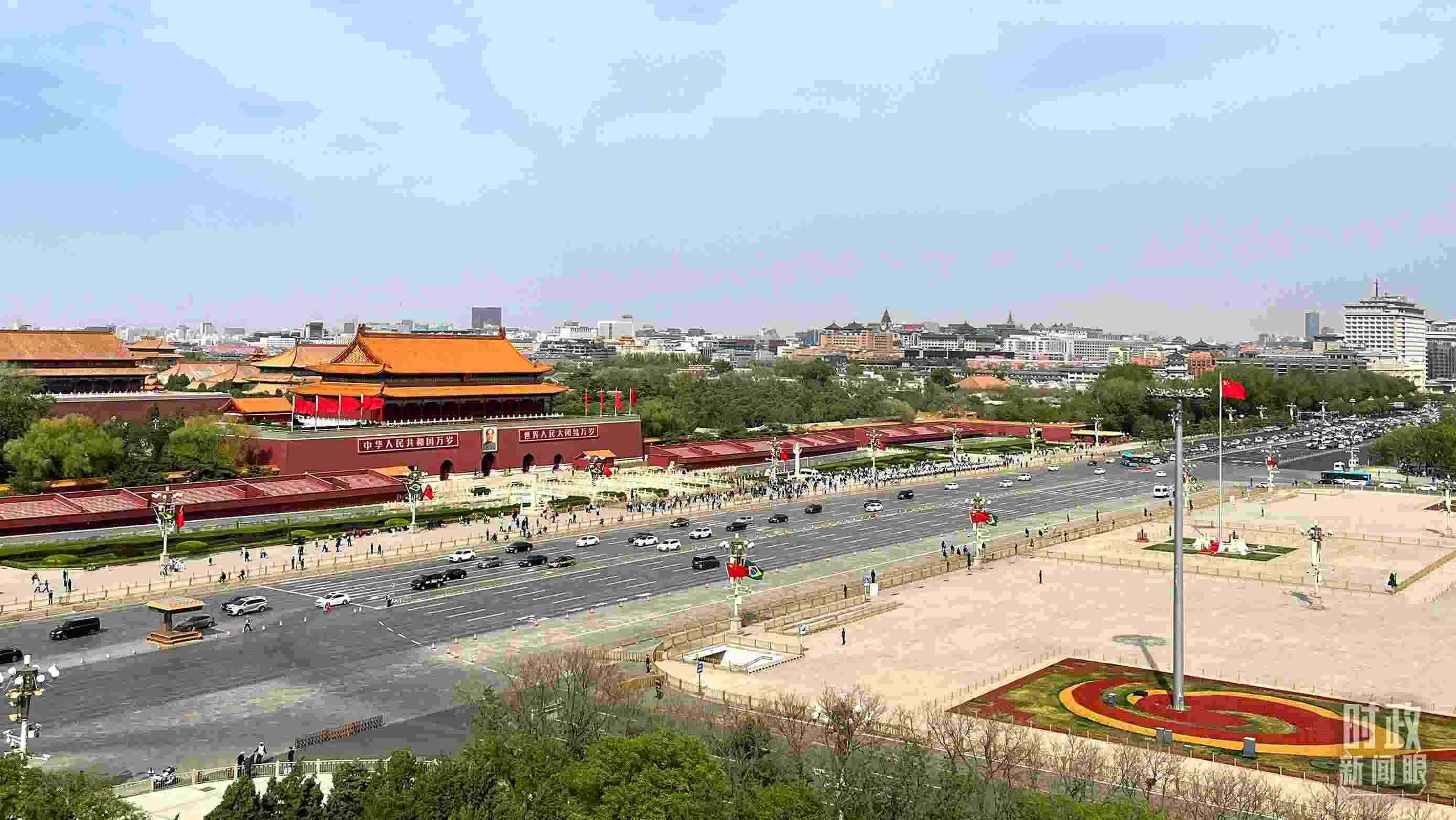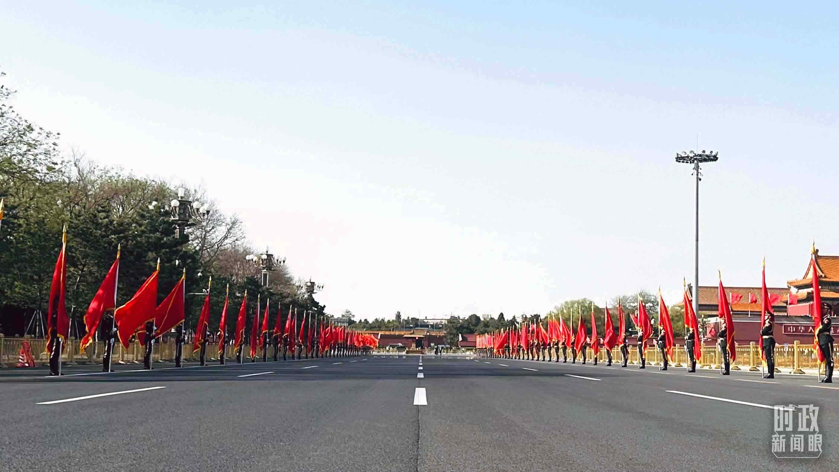 △長安街兩側(cè)懸掛起中巴兩國國旗。(總臺(tái)央視記者陸泓宇拍攝)