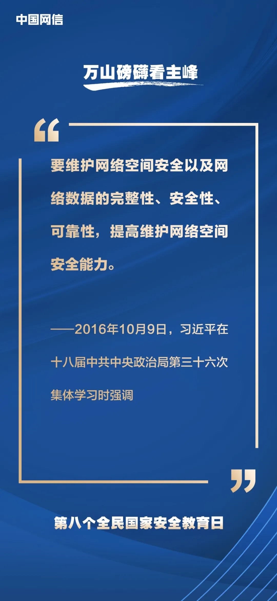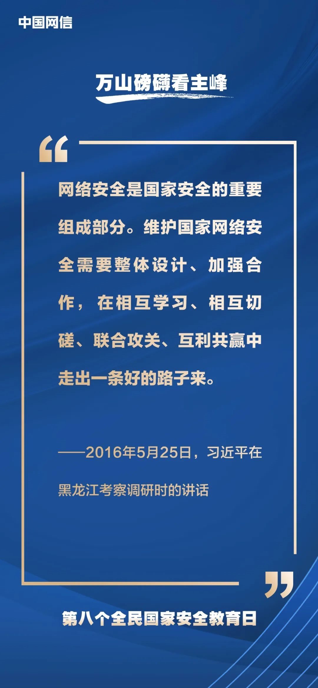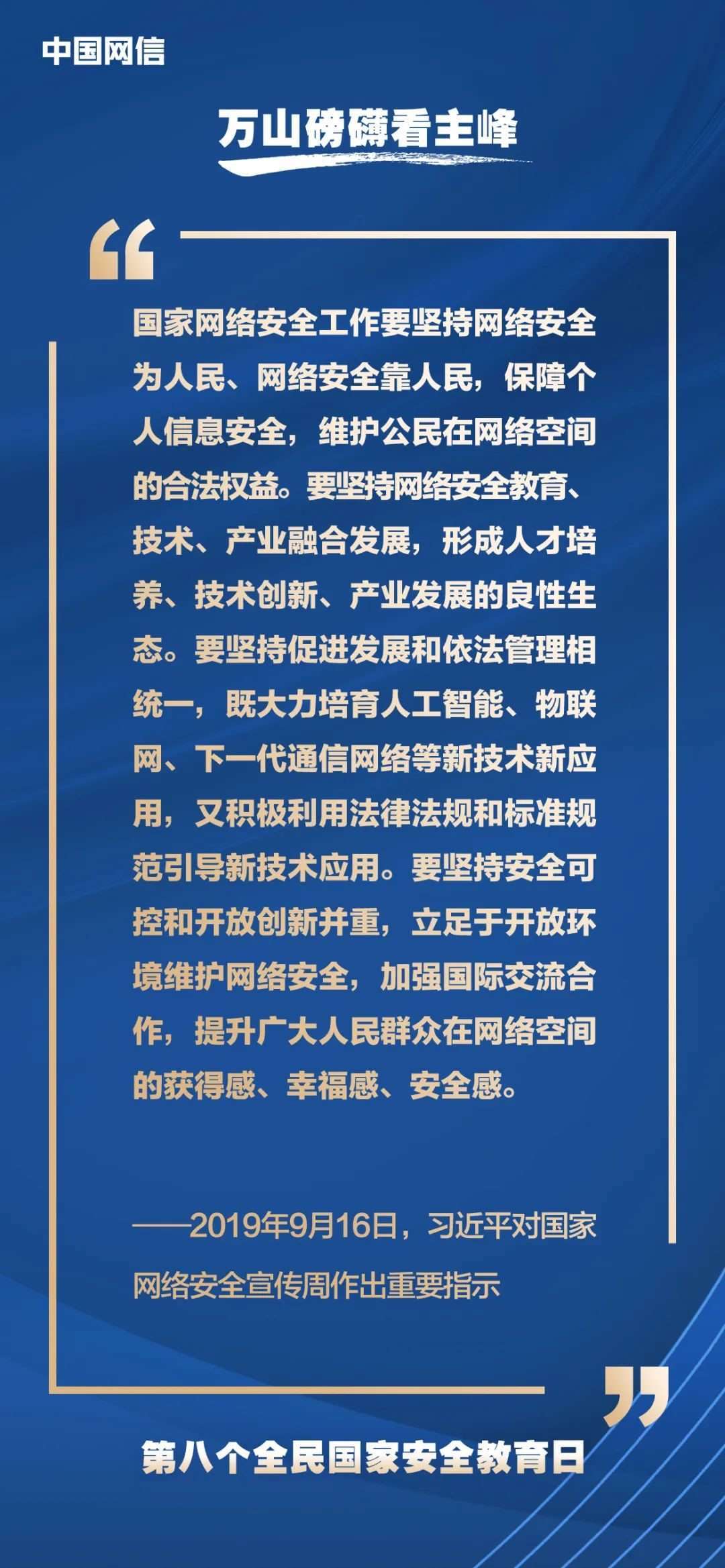國(guó)家安全是安邦定國(guó)的重要基石,維護(hù)國(guó)家安全是全國(guó)各族人民根本利益所在。2023年4月15日是第八個(gè)全民國(guó)家安全教育日,今年的主題是“貫徹總體國(guó)家安全觀,增強(qiáng)全民國(guó)家安全意識(shí)和素養(yǎng),夯實(shí)以新安全格局保障新發(fā)展格局的社會(huì)基礎(chǔ)”。沒(méi)有網(wǎng)絡(luò)安全就沒(méi)有國(guó)家安全,以下摘取習(xí)近平總書記關(guān)于“網(wǎng)絡(luò)安全”的重要論述,與你一起回顧學(xué)習(xí)。