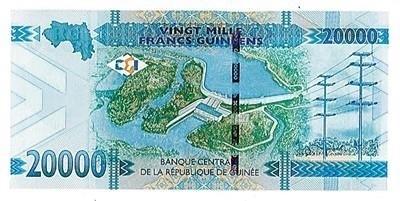 △在幾內(nèi)亞央行發(fā)行的該國最大面值兩萬幾郎紙幣上,印著中國長江三峽集團有限公司總承建的凱樂塔水電站。