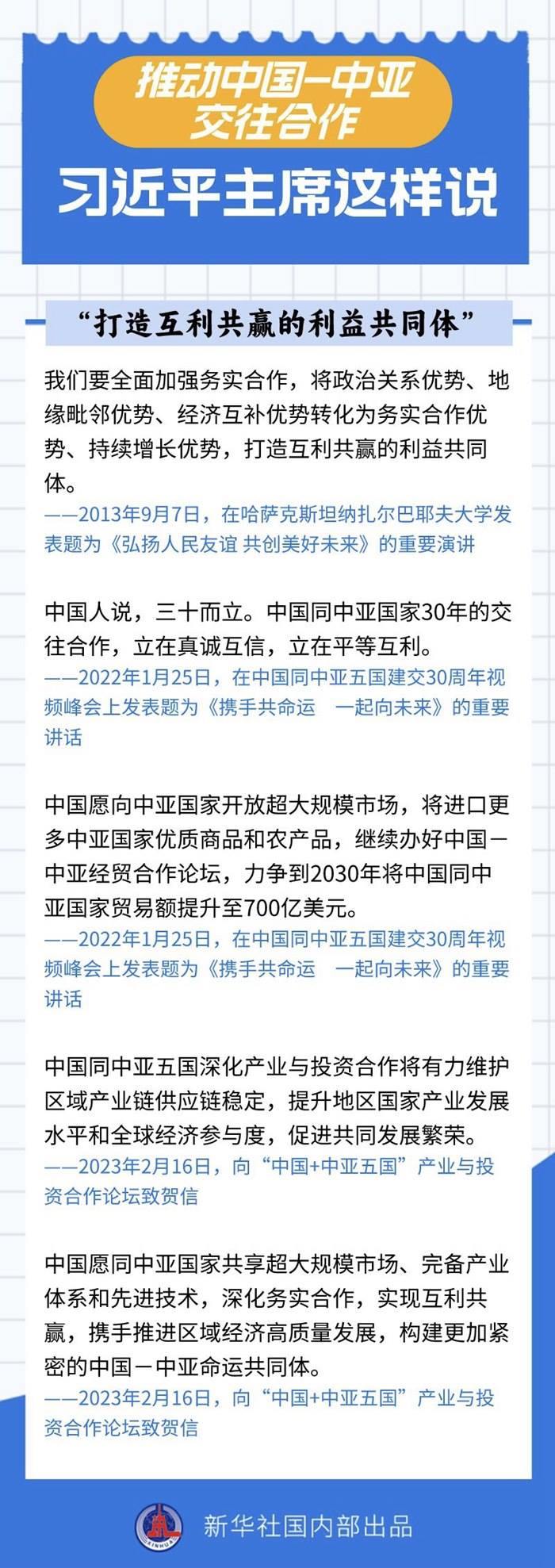 過去十年間,習(xí)近平主席同中亞五國領(lǐng)導(dǎo)人保持密切互動,引領(lǐng)中國同中亞國家政治互信不斷深化,務(wù)實合作提質(zhì)升級,國際協(xié)作走深走實。關(guān)于中國-中亞交往合作,習(xí)近平主席作出過哪些重要論述?一起來看——