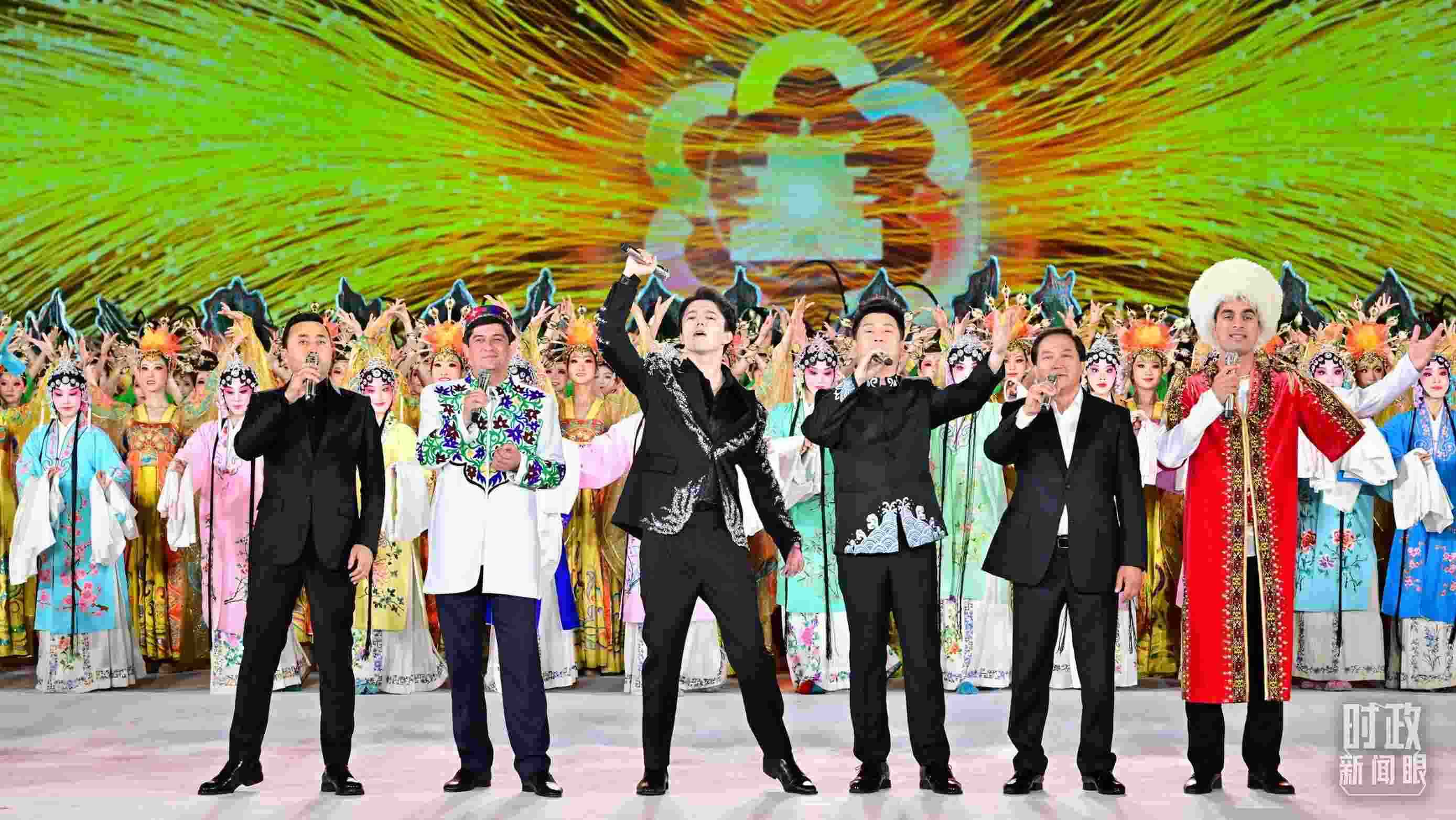 △來自中國(guó)和中亞五國(guó)的歌手聯(lián)袂演唱《美美與共》。(總臺(tái)記者孫楠拍攝)
