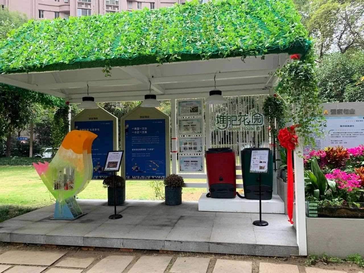 在愛家豪庭小區(qū)的“環(huán)保小屋”,土壤下面的“織物層”是居民用廢舊衣物鋪出來的,一旁是可以把濕垃圾轉(zhuǎn)化成花草肥料的“堆肥桶”。集時(shí)尚與科技于一體,這方綠意盎然的小天地成為垃圾分類與環(huán)保公益的宣傳陣地。