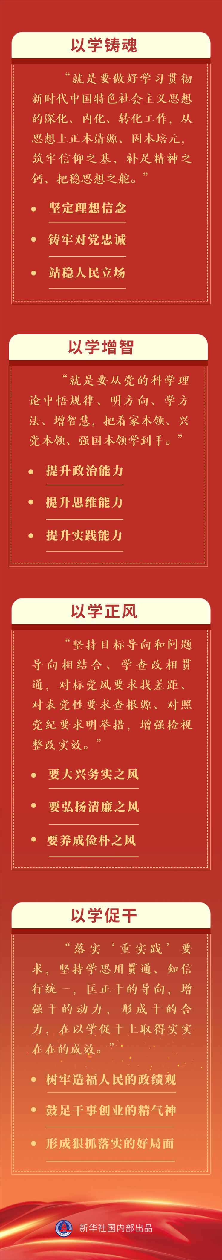 以學(xué)鑄魂推動(dòng)精神洗禮,以學(xué)增智強(qiáng)化能力提升,以學(xué)正風(fēng)促進(jìn)作風(fēng)轉(zhuǎn)變,以學(xué)促干推動(dòng)事業(yè)發(fā)展。