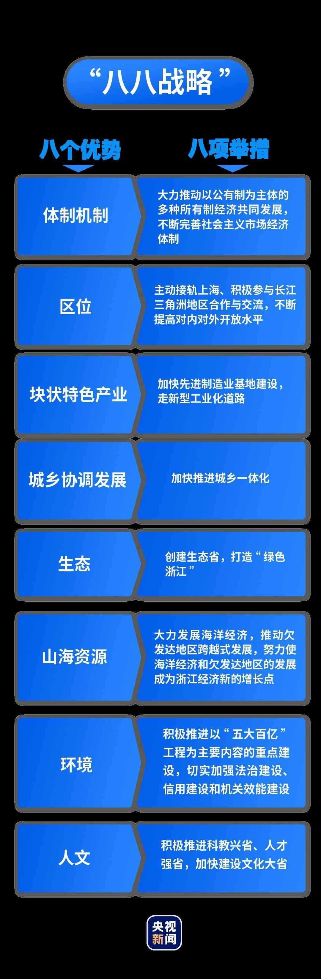 2003年7月10日,浙江省委十一屆四次全體(擴大)會議召開。時任浙江省委書記習(xí)近平全面系統(tǒng)闡釋了浙江發(fā)展的“八個優(yōu)勢”,提出了指向未來的“八項舉措”,這就是“八八戰(zhàn)略”。