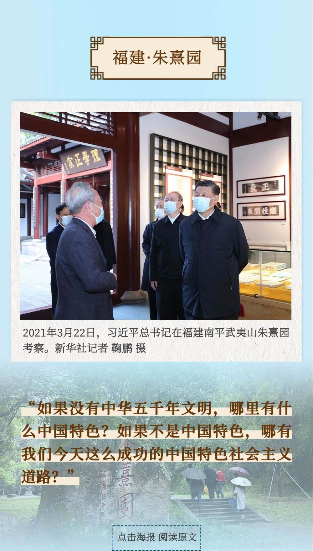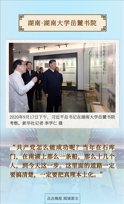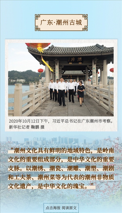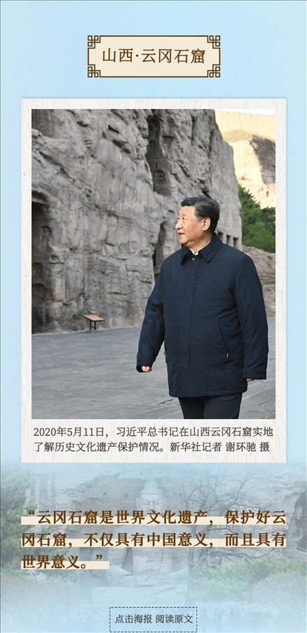 從四川三蘇祠到河南殷墟遺址,從山東孔府、孔子研究院到湖南大學岳麓書院,從甘肅嘉峪關(guān)關(guān)城到福建朱熹園,從山西云岡石窟到廣東潮州古城……考察文化遺產(chǎn)、探尋文明根脈,帶著深厚的歷史感,習近平總書記的“文化足跡”遍及全國。